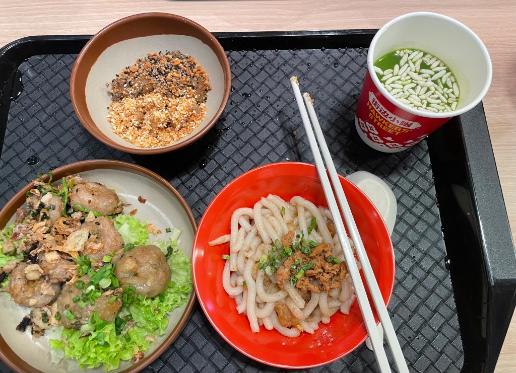 - Hakka “Mochi“/Ci-Ba 糍粑 (in the bowl): Ooh, this was good. There was some kinda oil (shallot? peanut?) drizzled on even though it was supposed to be a sweet dish… and it did lend a savouriness to this “dessert”.